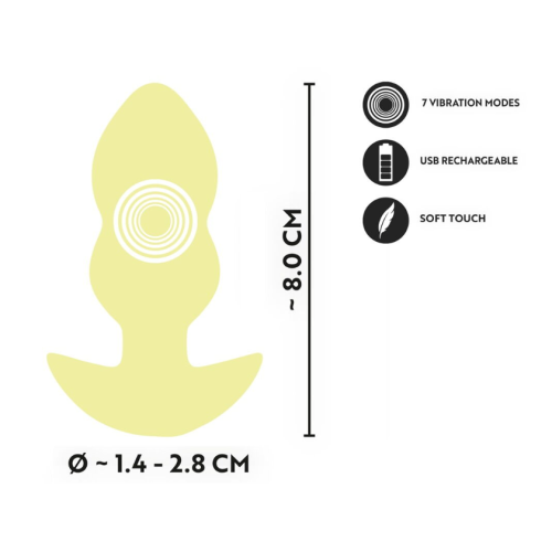 Анальная пробка с вибрацией Мощная глубокая вибрация в 7 режимах Маленький, компактный, удобный Простое управление Чувствительный наконечник Стимулирующая структура канавок и градация Эргономичная пробка, безопасная для здоровья Силикон с мягкой на ощупь текстурой Идеальная анальная игрушка для начинающих Перезаряжаемый - вкл. USB-кабель Игривая и полная вибраций для дерзких анальных приключений! Вибрирующая мини-пробка Yellow от Cuties - это дерзкое приключение для тех, кто хочет открыть для себя анальное удовольствие в игривой форме. Благодаря своей легкой конструкции и узкому кончику компактная силиконовая пробка скользит как по волшебству, а ее введение становится очень легким. Нежные градации и рифленая структура гарантируют захватывающие ощущения. 7 интенсивных режимов вибрации привносят в игру разнообразие и наслаждение. Просто нажмите на кнопку! Мягкий силикон с приятной на ощупь поверхностью делает Vibrating Mini Butt Plug приятным для кожи. Эргономичный анкерный ограничитель обеспечивает идеальную посадку и фиксацию в анусе для максимальной безопасности и комфорта - и приятного извлечения. Интенсивное удовольствие в заднем проходе с легкостью! Перезаряжаемая - USB-кабель для зарядки входит в комплект. Общая длина 8 см, длина введения 6 см, Ø макс. 2,8 см, конусность Ø 1,4 см. Вес 38 г. Силикон, полиуретан, ABS.