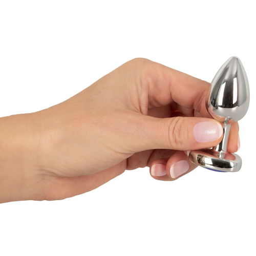 Гладенька металева пробка з декоративним дорогоцінним каменем у формі серця. Пробку можна використовувати для температурних ігор - її можна як нагрівати, так і охолоджувати. Поставляється в поліетиленовому пакеті. Розмір: заг. довжина 7 см, глибина проникнення 6 см, діаметр макс 2,7 смКолір: срібний, камінь - синій.