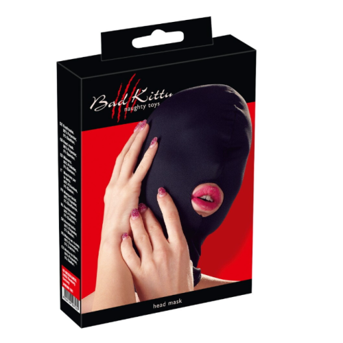 Плотно прилегающая к голове маска С отверстием для рта Мягкий тянущийся материал Почти непрозрачный Для самых изысканных фетиш-игр! Черная, плотно облегающая голову маска от Bad Kitty из мягкого тянущегося материала с отверстием для рта. Почти непрозрачная. 95>amp;#37; полиэстера, 5>amp;#37; спандекса.