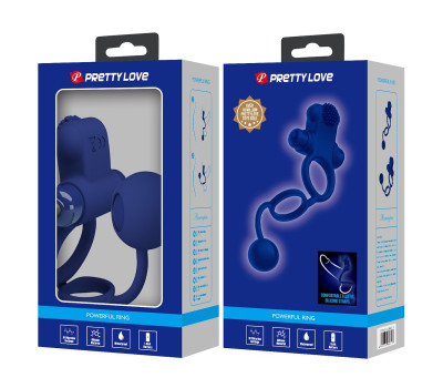 Подвійне кільце для пеніса і мошонки зі стимулятором клітора та кулькою на довгому силіконовому шнурі для стимуляції анальної зони або промежини. Також можна використовувати як обважнювач, вставивши кульку вагою 50г. В стимулятора для клітора можна вставити віброкулю з 10 режимами вібрації. Водонепроникний. Працює від 1 батарейки ААА (до комплекту не входить).Колір: синійРозмір: заг.довжина 20,3 см, діаметр кілець 3 см і 2,5 см, довжина віброкулі 6,3 см,