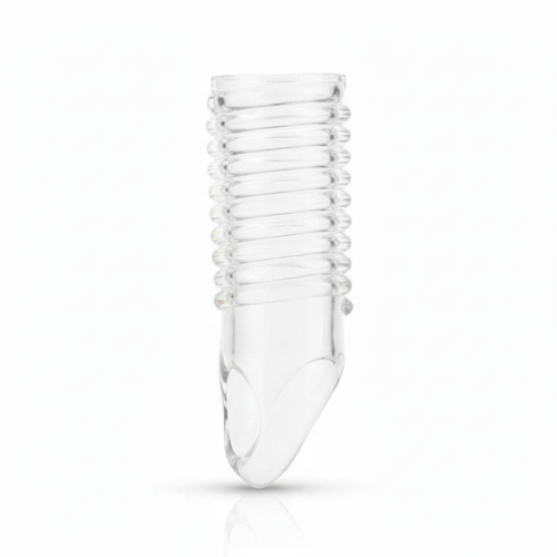 Эластичная открытая насадка на пенис, предназначена для усиления ощущений и дополнительной стимуляции во время полового акта. Открытая насадка оставляет головку пениса открытой, позволяя сохранять естественную чувствительность. Изготовлена из прозрачного, мягкого и высокоэластичного термопластичного эластомера >amp;#40;TPE>amp;#41;, который хорошо тянется и подходит для большинства размеров. Внешняя поверхность изделия имеет ярко выраженную ребристую текстуру >amp;#40;кольца>amp;#41;, которая обеспечивает дополнительную стимуляцию партнерши. Основание насадки выполнено в виде эластичного кольца для надежного закрепления на органе и обеспечения легкого эрекционного эффекта. Для сохранения целостности материала и комфортного скольжения используйте исключительно лубриканты на водной основе. После каждого использования промывайте насадку теплой водой с мягким мылом или специальным очистителем для интимных игрушек. После высыхания рекомендуется присыпать изделие тальком или пудрой для хранения игрушек, чтобы избежать липкости материала.