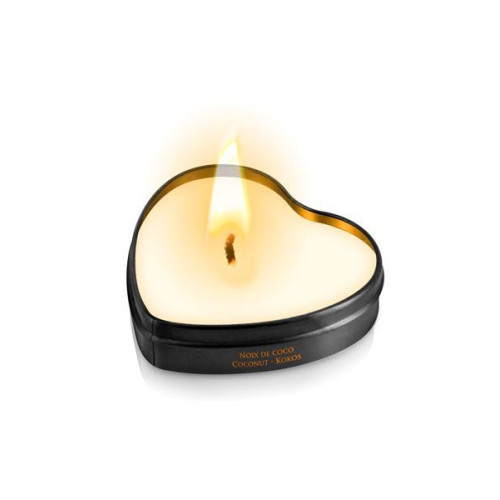 Массажная свеча в виде сердца Plaisirs Secrets Coconut (35 мл) с возбуждающим ароматом будет не только прекрасным дополнением к романтическому вечеру, но и подарит все возможности для эротического массажа. Массажная свеча при нагревании превращается в качественное массажное масло, которое легко втирается, увлажняет и придает блеск коже, а так же способствует приятному расслаблению и удовольствию. Свеча подарит ровный и уютный свет и наполнит комнату нежным ароматом.
