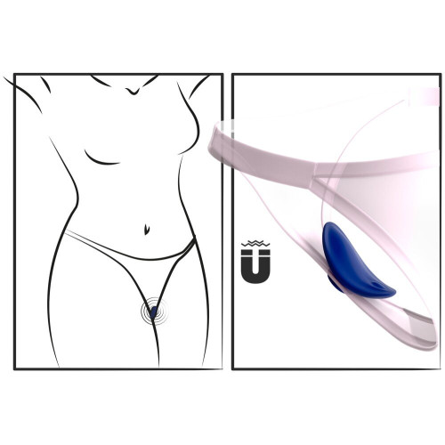 Дуже тонкий вібратор ергономічної форми оснащений невеликим, але потужним магнітом, який утримує його на місці, коли він знаходиться всередині трусиків. 10 режимів вібрації переключаються на пульті дистаційного управління (діапазон дії 8 м). У комплекті USB-кабель і батарейка (CR2032) для пульта дистанційного керування. Розмір: загальна довжина 10,4 см, ширина 4,5 см, висота (з магнітом) 3,8 см.Пульт дистанційного керування 6,1 см x 3,1 см.Колір: синій